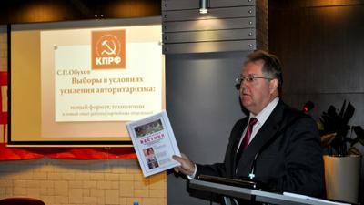 Одна из тем повестки нынешнего семинара партактива – анализ избирательной кампании 2013 года. Этому вопросу свое выступление посвятил член Президиума, секретарь ЦК КПРФ Сергей Обухов. Его доклад «Выборы в условиях усиления авторитаризма: новый формат, технологии и опыт работы партийных отделений КПРФ» был иллюстрирован красочной презентацией, и вызвал особый интерес участников форума.