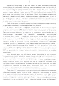 За январь - август 2015 г. инфляция составила 9,8 %, в том числе за первое полугодие цены выросли на 8,5 процента. За июль-август цены выросли на 1,2 процента. При этом июльская индексация регулируемых на федеральном уровне тарифов (на газ, электроэнергию, отпущенные для населения, теплоэнергию, водоснабжение и водоотведение) внесла в инфляцию июля-августа свыше трети подорожания (0,46 процентного пункта). Кроме того, синхронно были повышены регулируемые на местах тарифы на жилищные и прочие коммунальные услуги (на 6,5 % в среднем по России, на 40,9 % в г. Москве), что добавило в инфляцию еще 0,2 процентного пункта.