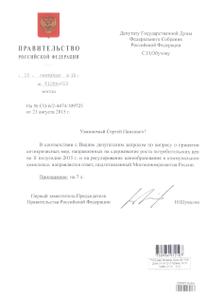 Депутатам Госдумы В.Ф. Рашкину и С.П. Обухову пришел ответ на их запрос от первого заместителя Председателя Правительства РФ И. Шувалова.
