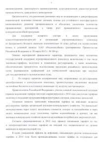 Правительством Российской Федерации принимаются меры, направленные на сдерживание роста цен. В частности, в целях сдерживания роста издержек ограничены размеры индексации регулируемых тарифов на товары и услуги компаний инфраструктурных секторов — цен на газ, сетевых тарифов в электроэнергетике, тарифов на железнодорожные перевозки грузов. Это способствует сдерживанию инфляции издержек на социально значимые товары, спрос на которые неэластичен, прежде всего, в энергоемких производствах (хлеб, сахар).