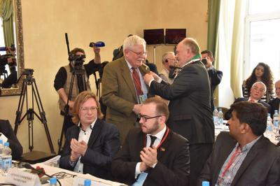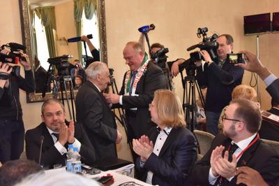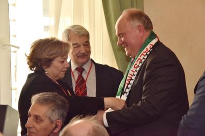 Ведущий: Возрождение нацизма может стать частью повседневной европейской реальности. На это нельзя закрывать глаза. Об этом заявил глава Компартии России Геннадий Зюганов на встрече международных общественных организаций в Москве. Политик поблагодарил зарубежных коллег за совместную работу и вручил памятные медали, а также отметил, что история России может стать примером для подражания.