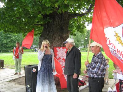 Менялись и зрители, и участники мероприятия. Под дубом есть возможность посидеть – по просьбе организаторов мероприятия муниципальное предприятие «Чистый город» выставило там летние скамейки. Дала возможность провести праздник и погода – накануне в Костроме прошла гроза с сильным дождём, начался дождик и в день проведения акции, но закончился к обеду. А по завершению мероприятия многие оставили свои телефоны для того, чтобы и в следующий раз коммунисты их могли пригласить.