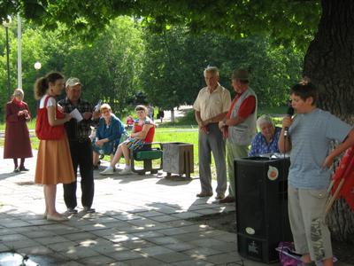 Прекрасно декламировала стихи и пришедшая на мероприятие жительница ближайшего дома (по всей округе заранее были расклеены объявления с приглашением на праздник). Замечательно выступили и дети, пришедшие с бабушками, также увидев объявление на подъездах. Например, Настя наизусть прочитала стих А.С.Пушкина «Стансы», а Коля – довольно длинное стихотворение про котят на английском языке.