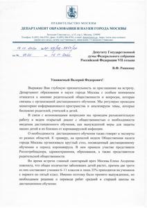 — Дорогие друзья, помните, я руководителя Департамента образования и науки города Москвы Александра Молоткова на большую встречу с родителями, не поддерживающими дистанционное образование? Он не пришёл, но пришёл от него ответ.