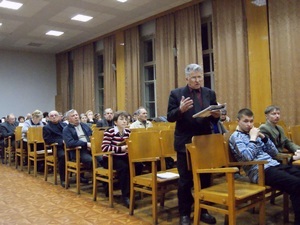 Вот и 8 февраля в здании обкома профсоюзов собралось более сотни человек: коммунисты, члены избирательных комиссий, наблюдатели. Главным вопросом повестки дня было открытое письмо Председателя ЦК КПРФ Г.А. Зюганова Президенту РФ Д.А. Медведеву. Первый секретарь Кировского горкома КПРФ А.В. Вотинцев познакомил собравшихся с основными тезисами этого документа, отражающего государственный курс, предлагаемый КПРФ, и отношение партии к текущим политическим событиям: мировому кризису, природным катаклизмам и террористической угрозе.