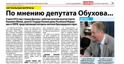 «Новая газета Динского района». На фото С.П. Обухов в Динском районе