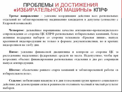 4. Проблемы и достижения в функционировании «избирательной машины» КПРФ
