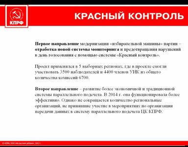 2) Первое направление модернизации «избирательной машины» партии – отработка новой системы мониторинга и предотвращения нарушений в день голосования с помощью системы «Красный контроль».