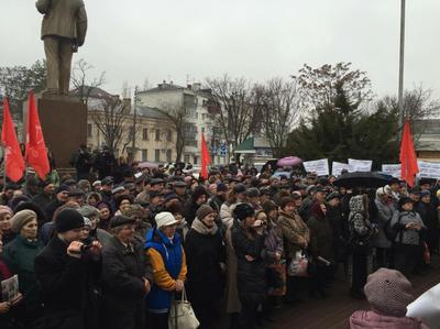 Несмотря на ненастье до тысячи краснодарцев вышли на митинг КПРФ, который состоялся на Привокзальной площади у памятника В.И.Ленину.
