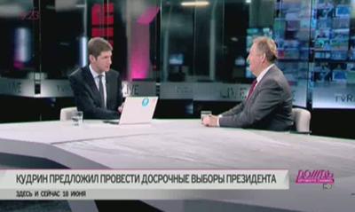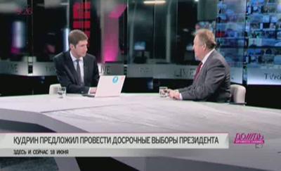 На телеканале "Дождь" обсуждалась инициатива трех фракций Госдумы о досрочном роспуске парламента и предложение экс-министра финансов Кудрина о досрочных президентских выборах