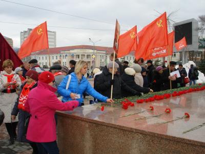 После конференции делегаты и гости из ЦК КПРФ отправились к памятнику В.И.Ленина на торжественный митинг, организованный южно-сахалинскими коммунистами. Отличные песни, звучащие из динамиков, развевающиеся алые знамена создавали особое приподнятое настроение и привлекали внимание прохожих.