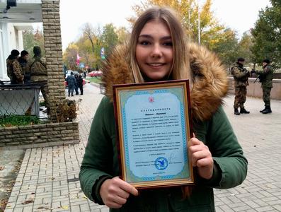 «Я сама школьница, в школу ходит и моя младшая сестренка, и я не смогла спокойно смотреть на события в Новороссии. Когда я узнала, что у детей Донбасса учебный год начнется с задержкой, 1 октября, я решила поддержать их, приехать и провести спортивный праздник. Дети живут и учатся под постоянной угрозой обстрелов, практически на войне, и я решила сделать все что в моих силах, чтобы хоть немного отвлечь их, рассказать о спорте, о мирной жизни, которая, я уверена, скоро обязательно наступит!.