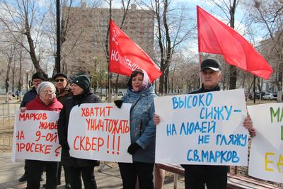 Жители Новокуйбышевска вышли с лозунгами «Лучшая поправка -Путина отставка!», «Верните льготы пенсионерам!», «Смирнова А.А. - в отставку», «Коммунисты против роста тарифов!», «Рост тарифов ЖКХ – террор против народа!», «Главу города Маркова – в отставку!».