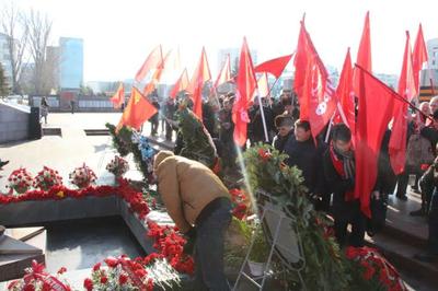 23 февраля, в День Советской Армии и Военно-Морского Флота коммунисты Самары возложили цветы к Вечному огню на площади Славы.
