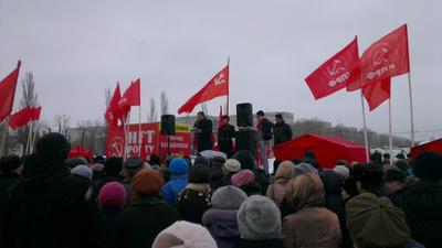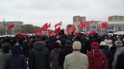 Митинг против повышения тарифов ЖКХ и урезания льгот, прошедший на Центральной площади у ДК «Тольятти», несмотря на мокрый снег и плохую погоду, собрал более тысячи человек.