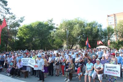Люди пришли с плакатами и транспарантами «Власть лезет в карман народа», «Нам нужен референдум!», «Нет повышению пенсионного возраста», «Руки прочь от наших пенсий» и многими другими. Параллельно с проведением протестного мероприятия, был организован сбор подписей под петицией против повышения пенсионного возраста. За несколько часов удалось собрать 750 подписей.