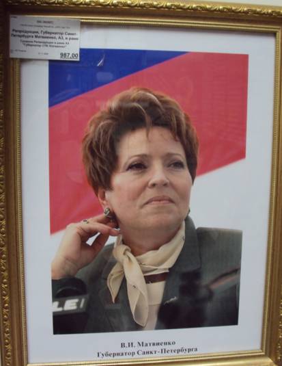 комментарий пользователя: "Матвиенко на фоне флага... несуществующего государства. стоит эта штуковина "всего" тысячу рублей. Магазин Буквоед, Невский 78.
