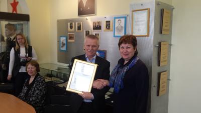 От имени учеников и родителей директор школы передала Сергею Михайловичу Пантелееву слова благодарности и памятный адрес.