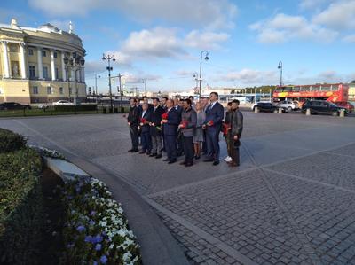 Делегация ЦК КПРФ во главе с Г.А. Зюгановым в ходе рабочей поездки в Санкт-Петербург возложила цветы к памятнику Петру I - "Медному всаднику".