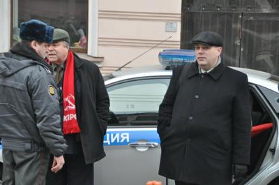 Пикет подходил к концу, когда группа полицейских приблизилась к пикетчикам с целью задержания коммунистов. Полицейскими был немедленно задержан помощник депутата Ворноцова коммунист С.В. Веснов за то, что держал в руках Знамя Победы. Следующей «жертвой» полиции был избран ветеран партии, инвалид, недавно вышедший из больницы В.В. Козлов, однако правоохранители тут встретили жесткий отпор пикетчиков и депутата-коммуниста Воронцова, не позволивших задержать ветерана. После продолжительной перепалки полиция приняла решение переключить внимание на новую «жертву» - был задержан помощник депутата Воронцова коммунист А.М. Богачев.