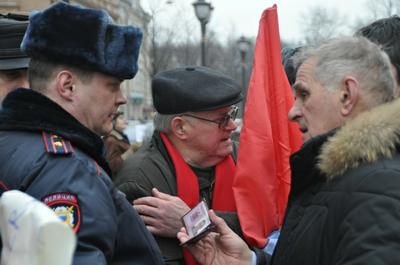 Особо циничным выглядит момент задержания коммуниста Богачева. Ретивый майор полиции подскочил к нему и вопросил: «А вы не инвалид, не блокадник, не узник фашистских концлагерей?». Получив отрицательный ответ, майор потащил коммуниста в полицейскую машину.