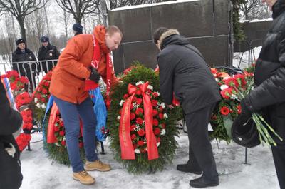 В возложении венка и цветов также приняли участие коммунисты Калининского района города и депутат фракции КПРФ в Законодательном Собрании Санкт-Петербурга А.В. Воронцов.
