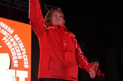 Митинг завершился праздничным салютом и исполнением "Интернационала".
