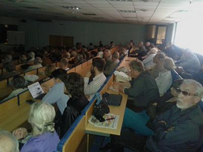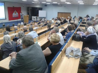 Надо отметить что заполоненный, как это обычно бывает на акциях Русского Лада в Петербурге, зал тепло и активно отреагировал на приветствие Алексей Васильевича.