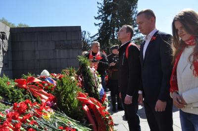 На импровизированном митинге перед возложением цветов выступила первый секретарь Санкт-Петербургского городского комитета КПРФ, член Президиума ЦК КПРФ О.А. Ходунова. Ольга Архиповна особо подчеркнула, что Победа в Великой Отечественной войне была возможна лишь под руководством Коммунистической партии и Верховного главнокомандующего генералиссимуса И. В. Сталина. Также перед собравшимися выступили член ЦК Компартии Финляндии Маркку Хонгисто и коммунист А.М. Шевченко.