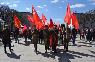 9 мая 2019 года c красными знамёнами Победы и с красными лентами на одежде пришли на Пискарёвское кладбище представители КПРФ, Ленинского комсомола, товарищи из Финской коммунистической партии, а также представители других общественных объединений – всего более трехсот человек.