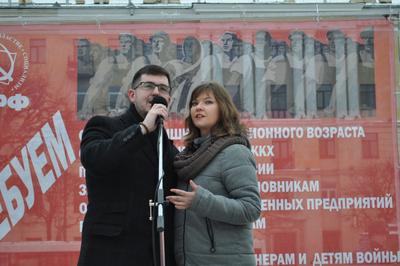 Следующее слово было предоставлено члену Санкт-Петербургского городского комитета Ленинского Комсомола Виктории Севериной. Девушка отметила, что сегодня выходить на улицы и бороться за свои права и за смену всей конституционной системы – единственный путь к нормальной жизни граждан. «Менять нужно всю буржуазную систему, а не одного единоросса-олигарха на другого», - сказала комсомолка.