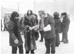 Кроме газеты «Товарищ» комсомольцы раздавали свои новогодние листовки, а коммунисты — газету «За народовластие» с обращением ЦК КПРФ к гражданам России. Больше всего меня порадовало то, что наших сторонников было достаточно много, раздача материалов велась в различных микрорайонах Ленинского района. Отказавшихся брать наши агитационные материалы было не более 10—15 %. Всего за два часа было распространено более полутора тысяч газет и листовок. Многие граждане, взяв в руки газету, листовку, говорили: «Спасибо за газету и за то, что вы есть и боретесь с этой коррумпированной властью».