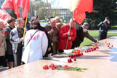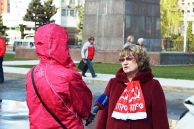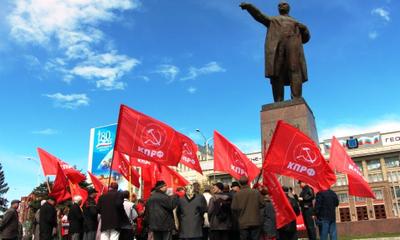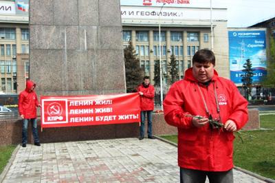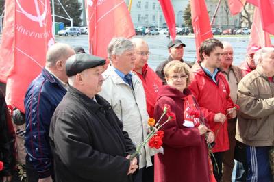 Ровно в полдень саратовские коммунисты возложили цветы к памятнику Ильичу и провели митинг.