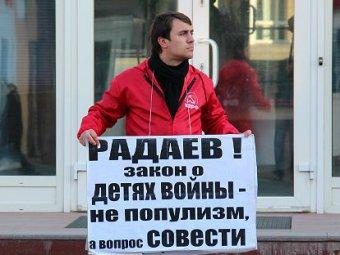 Позднее эстафету одиночных пикетов принял первый секретарь Фрунзенского РК КПРФ Николай Бондаренко. Он около часа держал в руках плакат с надписью «Радаев! Закон о детях войны – не популизм, а вопрос совести».
