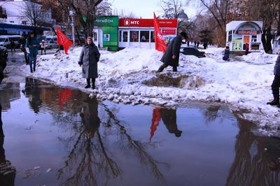 Встреча саратовцев с Ольгой Алимовой плавно переросла в митинг. Стоит отметить, что организаторам саратовского митинга и пришедшим горожанам пришлось проводить акцию протеста на небольшом очищенном от снега пятачке, большую часть которого занимали глубокие лужи и снежная каша.