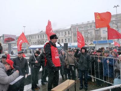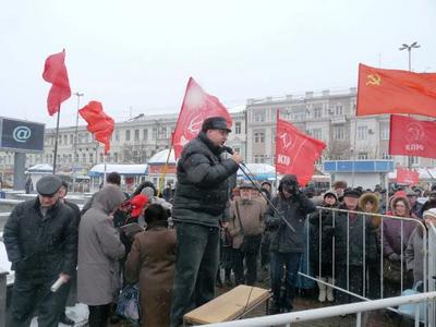 Манифестанты приняли резолюцию, в которой выражается протест против, творимого властью криминального беспредела, в отношении кандидата от КПРФ А.Е. Локтя на выборах мэра Новосибирска.