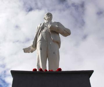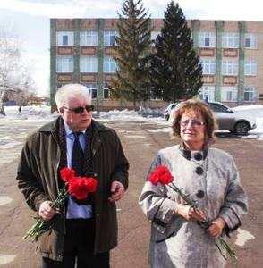 Ольга Алимова и первый секретарь Новобурасского РК КПРФ Николай Алексеевич Задоров возложили цветы к памятнику В.И. Ленину.