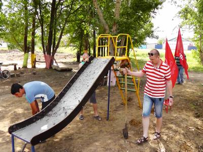 Депутат-коммунист сдержала свое слово, и 29 мая состоялось ее торжественное открытие. Качели, горка, песочница, лавочка, рукоход — все это отдано во власть детворы.
