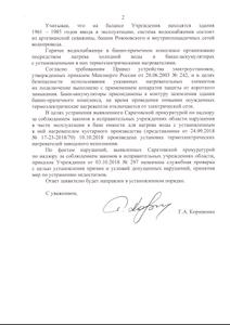 В пришедшем на днях ответе сообщается, что администрацией ФКУ ЛИУ-3 УФСИН России по Саратовской области достигнута договорённость о пополнении библиотечного фонда в 2018 году за счёт пожертвований Русской Православной Церкви, а в банных ёмкостях для нагрева воды установлены термоэлектрические нагреватели заводского производства взамен кустарно изготовленных. Кроме того, по фактам выявленных нарушений назначена служебная проверка.
