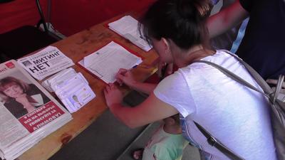 На мероприятии раздавались партийные газеты и был организован сбор подписей против повышения пенсионного возраста.