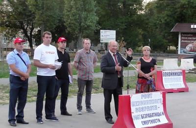 В заключение митинга выступил Валерий Рашкин. Он резко критиковал повышение пенсионного возраста, которое вынудит миллионы наших сограждан в буквальном смысле работать до гробовой доски. По его мнению, ссылки «ЕР» и проправительственных СМИ на поддержку реформы в регионах «абсолютно необъективны», так как по всем соцопросам в стране более 90% людей против антинародного закона.