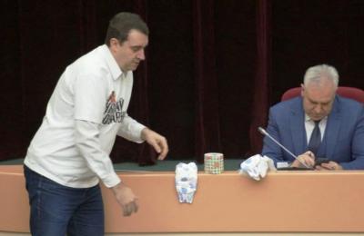 Глава фракции КПРФ Александр Анидалов вручил вице-спикеру Саратовской областной думы Антонову памперс и рулон туалетной бумаги, намекая на тот первобытный ужас и ненависть, которые испытывают члены медвежьей партии в отношении народного депутата.