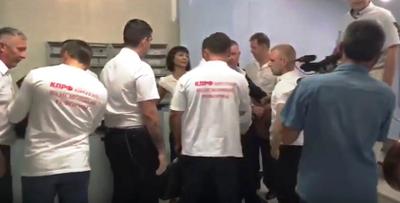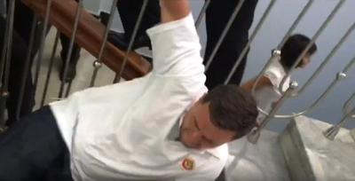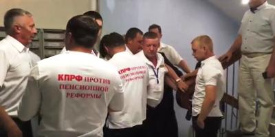 Н.Н. Бондаренко попытался пройти, но охранники выстроились «живым заслоном». Они даже применили силу к депутату-коммунисту, повалив его на лестницу.