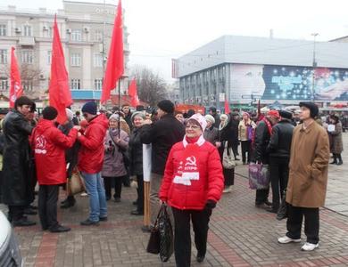 Митинг открыл первый секретарь Саратовского горкома КПРФ Александр Юрьевич Анидалов. Над площадью торжественно прозвучал Гимн Советского Союза. Затем к собравшимся "обратился" вождь Великого Октября В.И. Ленин со своей знаменитой речью "Что такое социализм".