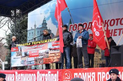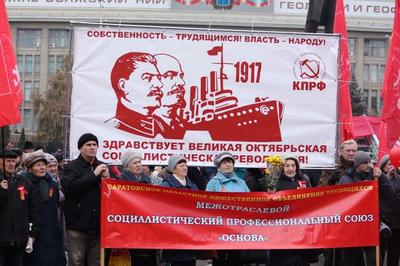 В этом году праздничная дата – 97-я годовщина Великой Октябрьской социалистической революции пришлась на рабочий день. Несмотря на это, 7 ноября в городах Саратове, Энгельсе, Балашове, Балакове состоялись демонстрации и митинги трудящихся, организованные городскими и районными комитетами КПРФ и посвященные этой славной дате.