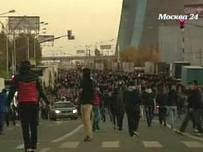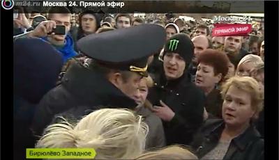 Хроника событий. «Москва, 13 октября. В столичном районе Западное Бирюлёво на месте «народного схода» начались беспорядки. В акции протеста принимают участие около трех тысяч человек. На месте происшествия стянуты бойцы ОМОНа», - передает «МИР 24». - «Огромная толпа движется к овощной базе, где работают мигранты. Полиция пытается препятствовать движению. Началась драка. В ход пустили дымовые шашки. Также на место прибыли пожарные машины, людей хотят разгонять водой.