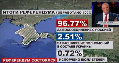Он добавил что у коммунистов не вызывает никаких сомнений убедительность итогов референдума, подавляющее большинство участников которого высказалась за присоединение к РФ.