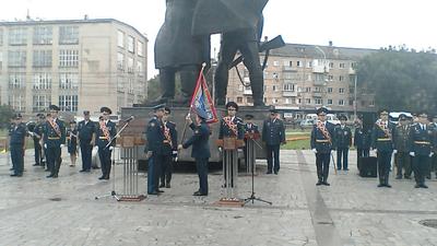 Закончилась церемония торжественным прохождением строем личного состава управления, возложением гирлянды и цветов к памятнику защитникам Тулы в 1941 году и фотографированием у знамени УФСИН России по Тульской области.