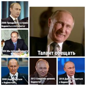 Ну а про обещания борьбы с бедностью русский народ слышит от Путина с 2000 года. Смотри картинку.