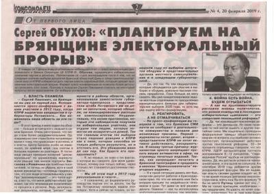 Сергей Обухов: «Планируем на Брянщине электоральный прорыв». Из интервью газете «Комсомолец Брянска»